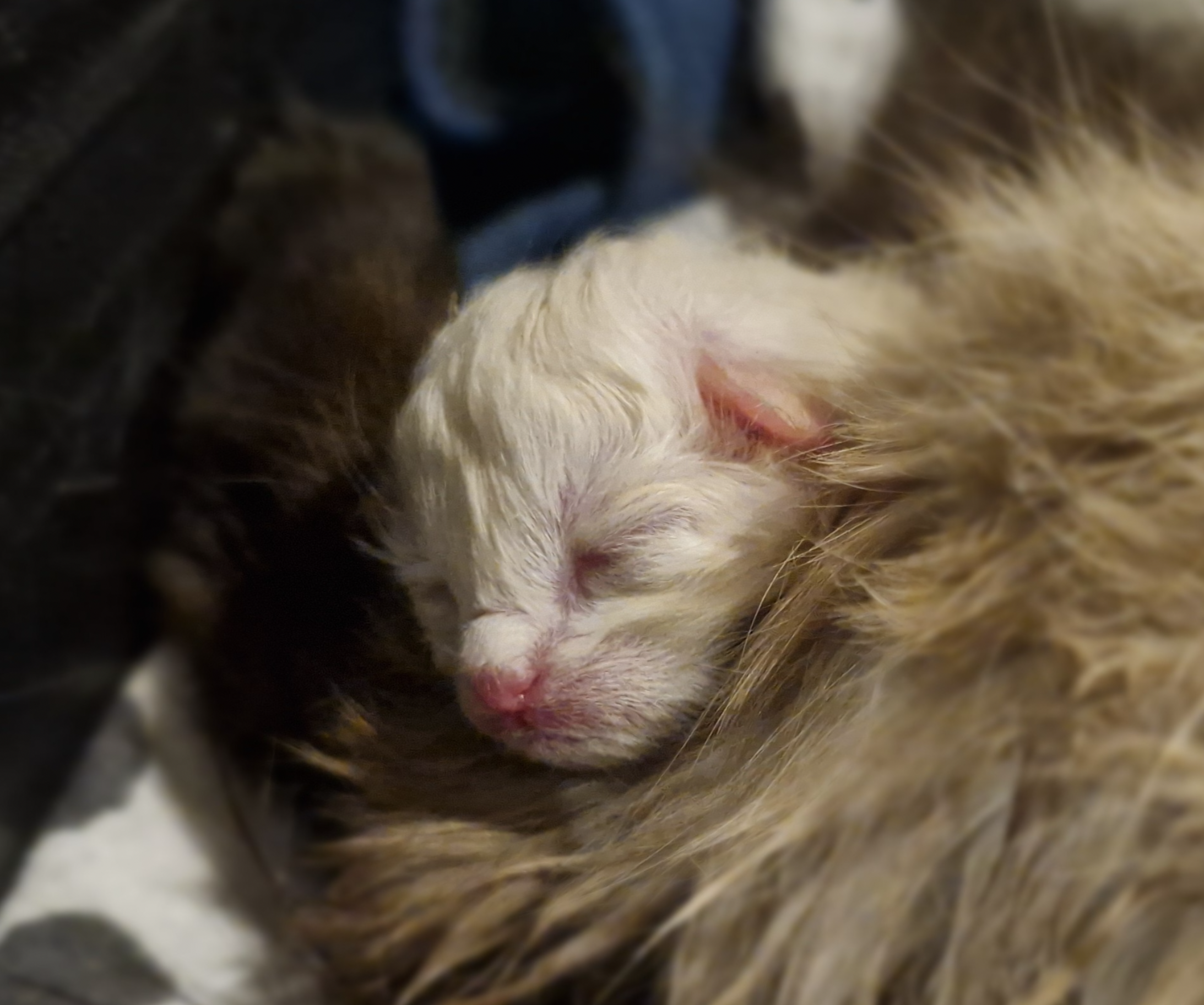 The kittens will start play-fighting each other but they’re not strong enough to hurt each other even if they try. Mostly it just makes them fall over. When they are first walking, their bellies often drag on the ground.