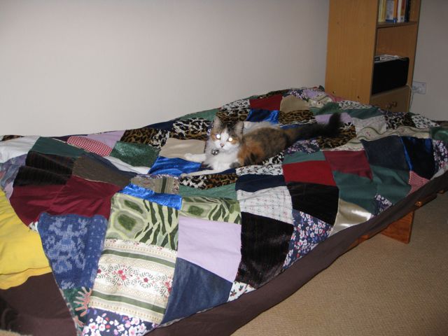And this is how the completed doona cover looked when I finished – and added a possessed cat I’d prepared earlier (I had sewn the combined pieces to the doona cover, cunningly remembering to leave a doona opening):