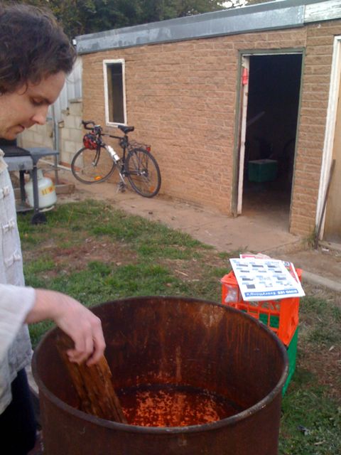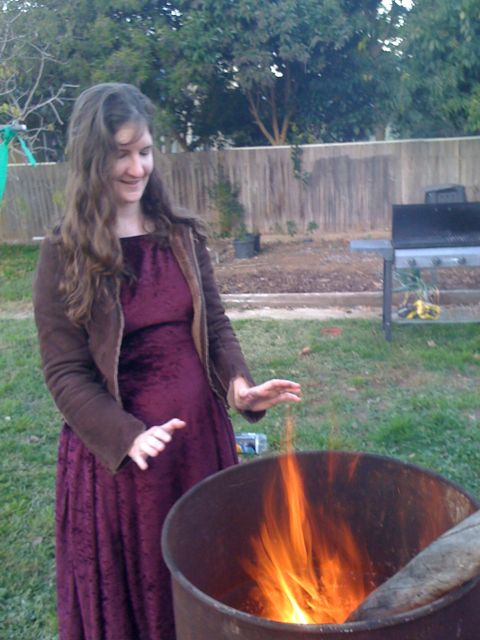 Naturally, with so much manly energy about, fire happened. I confess I rather enjoyed watching the men take on ironically deep voices and advise each other on the best wood, structure, etc. (I LIKE men.) Unlike so many similar scenes, this fire caught immediately and burned well.