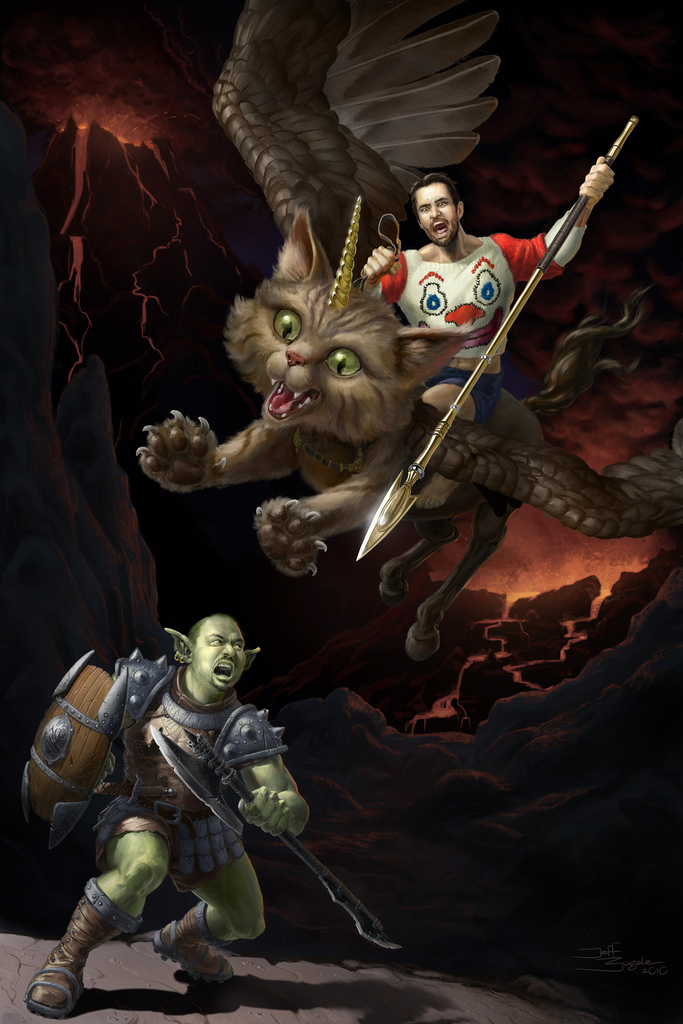 This painting was brought into horrifying being by Jeff Zugale, and if you think the faces look familiar, you’re right. It’s a prompt for a writing competition to help lupus sufferers (because sometimes it IS lupus), and all the details are at http://whatever.scalzi.com/2010/05/30/fanfic-contest/