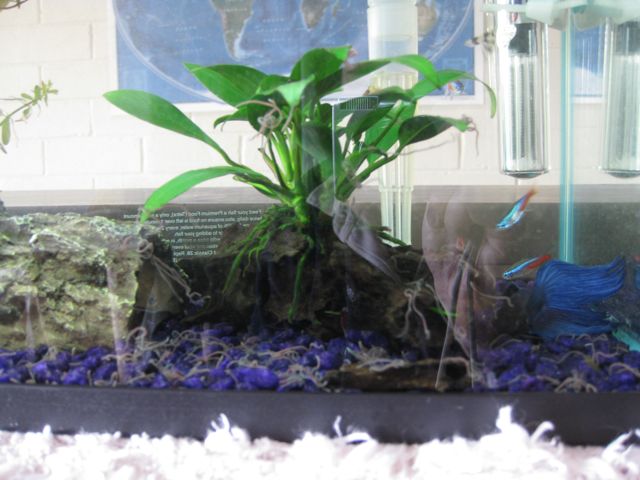 My neon tetras have no survived a month in my tank, so I’m pretty confident they’ll live long and happy lives (those that my reticulate didn’t eat, that is). I’m slightly concerned about Gandalf’s fin health, so I’ll be looking into that this week. At present my reticulate and my fighting fish (Gandalf) are eating live worms, as pictured writhing on the gravel here (mmm. . . live spaghetti):