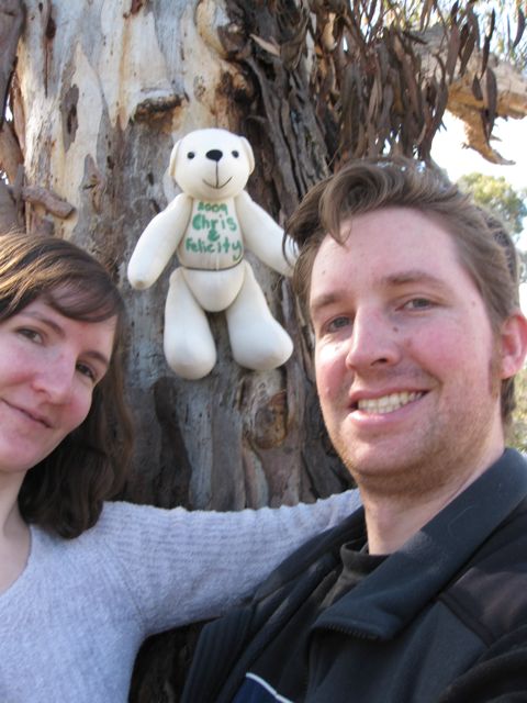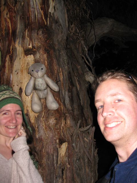 Today is the 18-month anniversary of our marriage (also roughly three and a half years since my original Notion of Bear). So on our way back from another coast trip, we went on a BEAR HUNT. Thanks to CJ actually having a memory, we found the bear. Our monument of love lives! (In fact, if you like microorganisms, it lives more than ever before.)