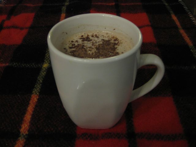 It’s insanely delicious, but quite hazardous. Do not drink it if you are pregnant (because there’s booze in it), going to drive anywhere (the combination of schnapps and hot milk is intensely soporific), or an insomniac (because there’s chocolate and thus caffeine in it).