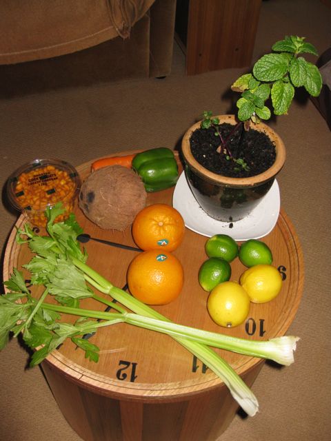 Yesterday I made hommus (for the first time in my life; I’ll blog about it officially soon). Tomorrow I’ll be making soup for lunch, and serving all these items as snacks during the day, as I desperately try to not eat chocolate or lollies – the fruits and mint here will all go into a mighty delicious drink of awesomeness. I may even let someone else have a sip.