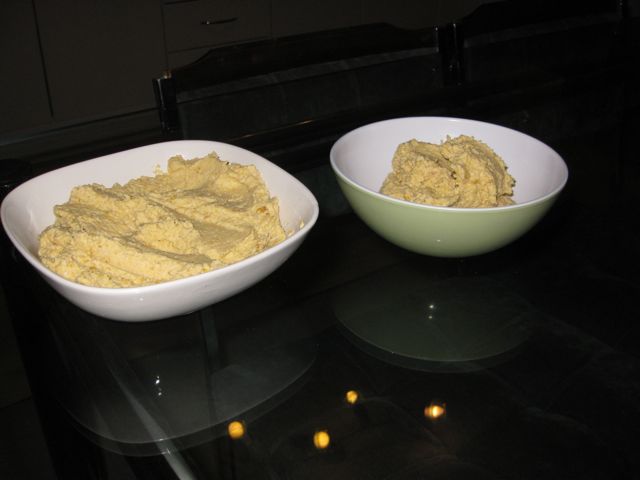 It was the hummus that really made him mad. I found a recipe with no tahini (sesame paste), because I didn’t have any tahini. That left olive oil, lemon juice, cumin, garlic, a whole lot of chickpeas, and an unspecified quantity of water.