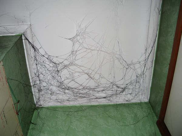 And here’s another photo of my parents’ house, taken less than a month earlier (yay for insurance!) This was taken at the far end of the house from the actual fire. The “spiderwebs” are toxic solidified plastic from the burning microwave.
