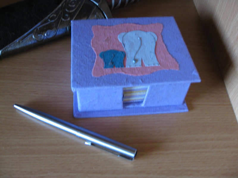 This is an awesomeness that is right up my street. Here’s the “notebook” I acquired (it’s actually a little box of recycled paper, with a lid that closes with a most satisfying tap).
