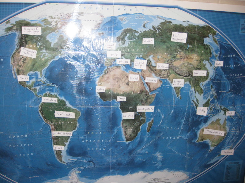 So I decided to collect famous foods from EVERY CONTINENT ON EARTH and serve them all at once, making sure the world is as well-represented as possible. Naturally, I’d only eat delicious things (eg I don’t like curry, so I chose butter chicken for India), and I’d have to fudge in places (Africa was hard, particularly since I cordially dislike most vegies) – but I’d try to be as stereotypical as possible.
