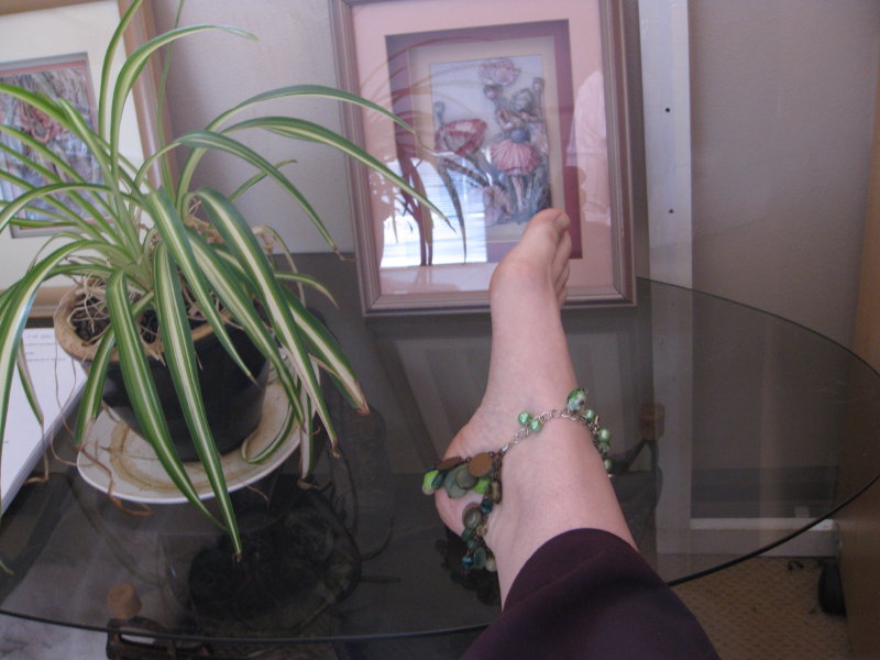 Today I wore bells around my ankle (not bells technically – two bracelets hooked together – but they jingle). Every time I move, they make noise.