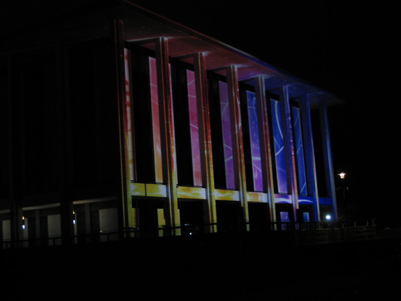 Last night CJ and I went and saw the seriously awesome light sculptures that have been engineered for several of Canberra’s best-known buildings – Old and New Parliament House, The National Gallery, and the National Library.