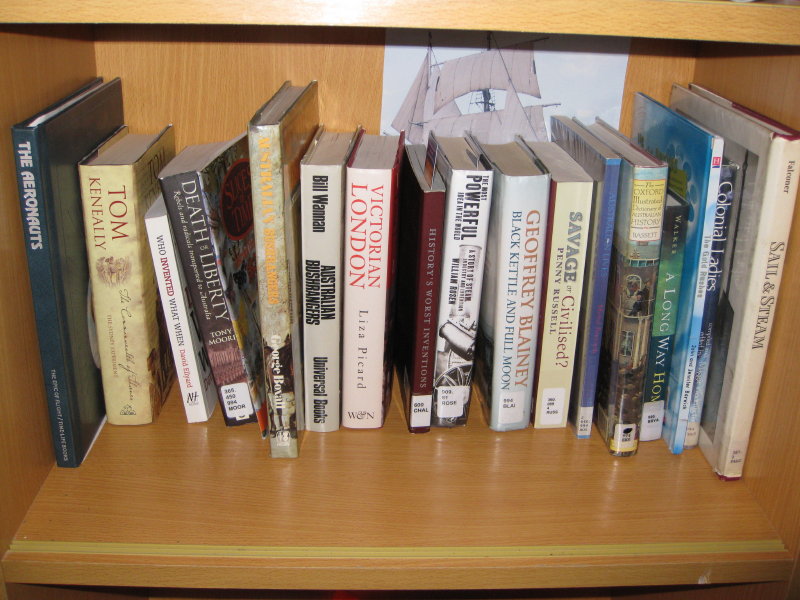 For general Australian history I skimmed through “The Oxford Illustrated Encyclopedia of Australian History” (wikipedia was way more useful for getting a grounding in things) and “A History of Victoria” by Blainey (good, but not as relevant as the other one). I also read “The Gold Rushes” by John and Jennifer Barwick (a children’s book, which suited me fine).