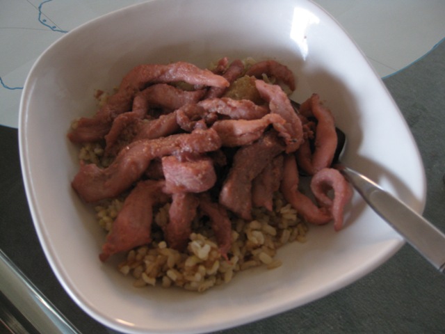 My conclusion: Yummy, but not enough sauce (or, sidebar, any hint of vegies – my bad). Next time I’ll double the sauce. Also, a question for Mr Internet – is there a difference between pork tenderloin and stir-fry pork?