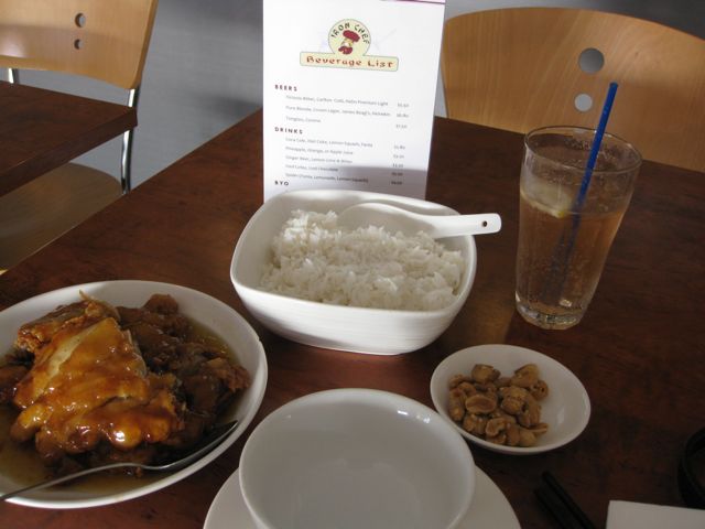 I had boneless lemon chicken. It was a beautiful combination of crispy, sauce-laced skin and sweetly ordinary moist chicken. Much nom. On a Wednesday evening – the night before public service payday – it was fairly quiet, and the service was lightning fast (you can tell, because my peanuts are still there).