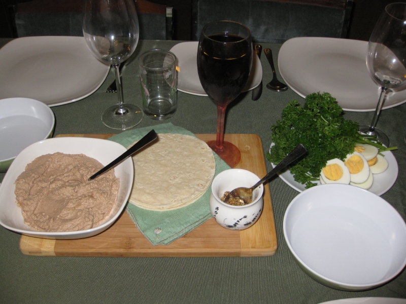 For better or worse, CJ and I celebrated our own version of Passover this year (with four friends who had never been part of a Passover ritual before). Be advised that I’ve blurred together several quite different rituals with information from google and my own family’s traditions.