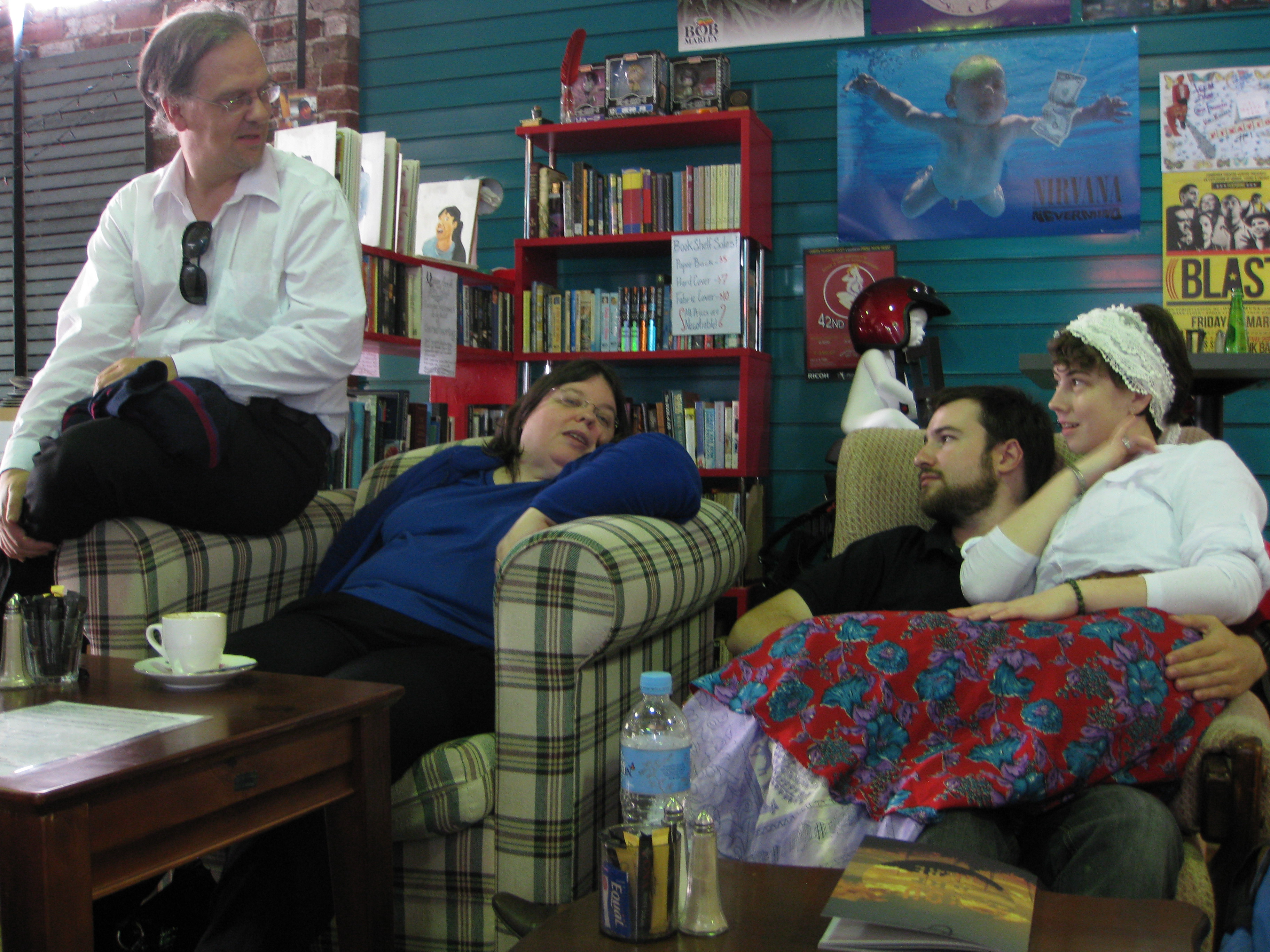 The other day I discovered a new cafe – the Red Herring (near Canberra’s merry-go-round). It’s all couches, books, movie and TV posters, free foosball, ug-booted staff, and young ruffians either playing acoustic guitar or sleeping.
