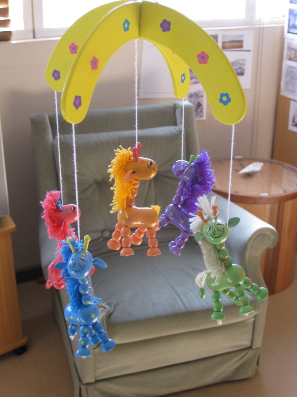 Also, I was given Mini-Me’s first mobile – which caused me to flip out both delightedly and immoderately. I particularly enjoy the disturbed expressions on the faces.