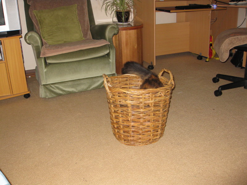 If you’re wanting gratuitous fat-belly shots (Mini-Me is now around 16cm from head to bum), just scroll down to the entries from yesterday and the day before. In the meantime, here’s some gratuitous cuteness from last night: