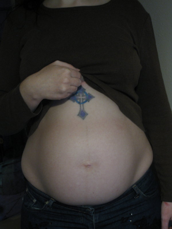 Apparently most of the belly growth happens in second trimester, so (fingers crossed) I won’t get toooo much bigger (although Louisette currently weighs a little under a kilo, so she’ll more than triple in size – most of the pregnancy weight gain is the baby support system, which is already in place). In any case, before it gets even more terrifying, here are a couple of pictures showing my true size – and showing that my tattoo appears to be coping fine.