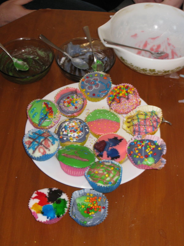 One game was that we each had a bracelet made of paperclips, and if you caught anyone saying “baby” you took one of their paperclips. Another was thinking up A-Z baby names (two points for every unique name), and the third game – by far the most popular – was decorating cupcakes. Much experimentation was had, and it worked really well for all ages.