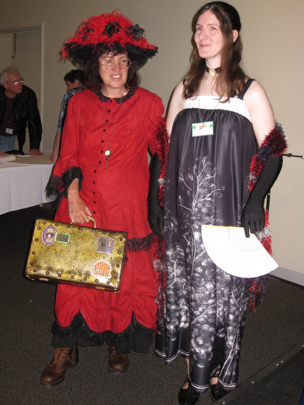 Yesterday’s steampunk panel was loads of fun. Myself, Dawn Meredith and Jane Virgo discussed the definitions of steampunk, why we love steampunk, and the little Australian steampunk that is now available (namely, Richard Harland’s “Worldshaker” series, James Roy’s “Ichabod Hart and the Lighthouse Mystery”, Margo Lanagan’s short story “Machine Maid” and a new book none of us have read yet which is called “Wanted: One Scoundrel, Jenny Schwartz”).