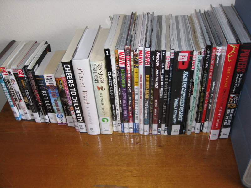 When we married, CJ owned about four hundred books* and two hundred DVDs. I owned about half a dozen books (having relied on the library system for many years), and a similar number of DVDs.