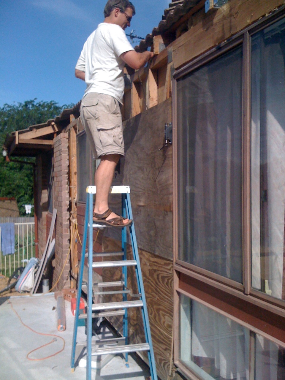 My friend bought a house only a few years ago, so she has a long way to go until that certain age – but, on the other hand, her husband (pictured below in non-OH&S-approved footwear) is a builder. So they bought a really cheap house and they’ve been doing marvellously messy things to it ever since.
