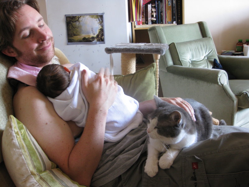 And here’s a picture of a cat, as per usual – but with a bonus baby and CJ, as our family gets used to one another: