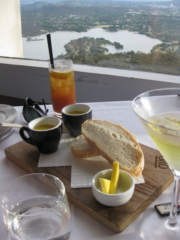 In the restaurant, the view is constantly changing as the restaurant revolves, and it’s all beautiful. Canberra is a special city. Believe it or not, the restaurant is quite central (despite all the trees and water).
