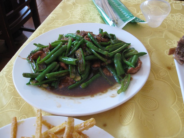 It wasn’t pork. It was beef (well, probably. It’s hard to tell with Chinese beef, which is horrid even when it’s actually made from a cow). And the beans were not beans. Oh no, dear reader. They were chillis.