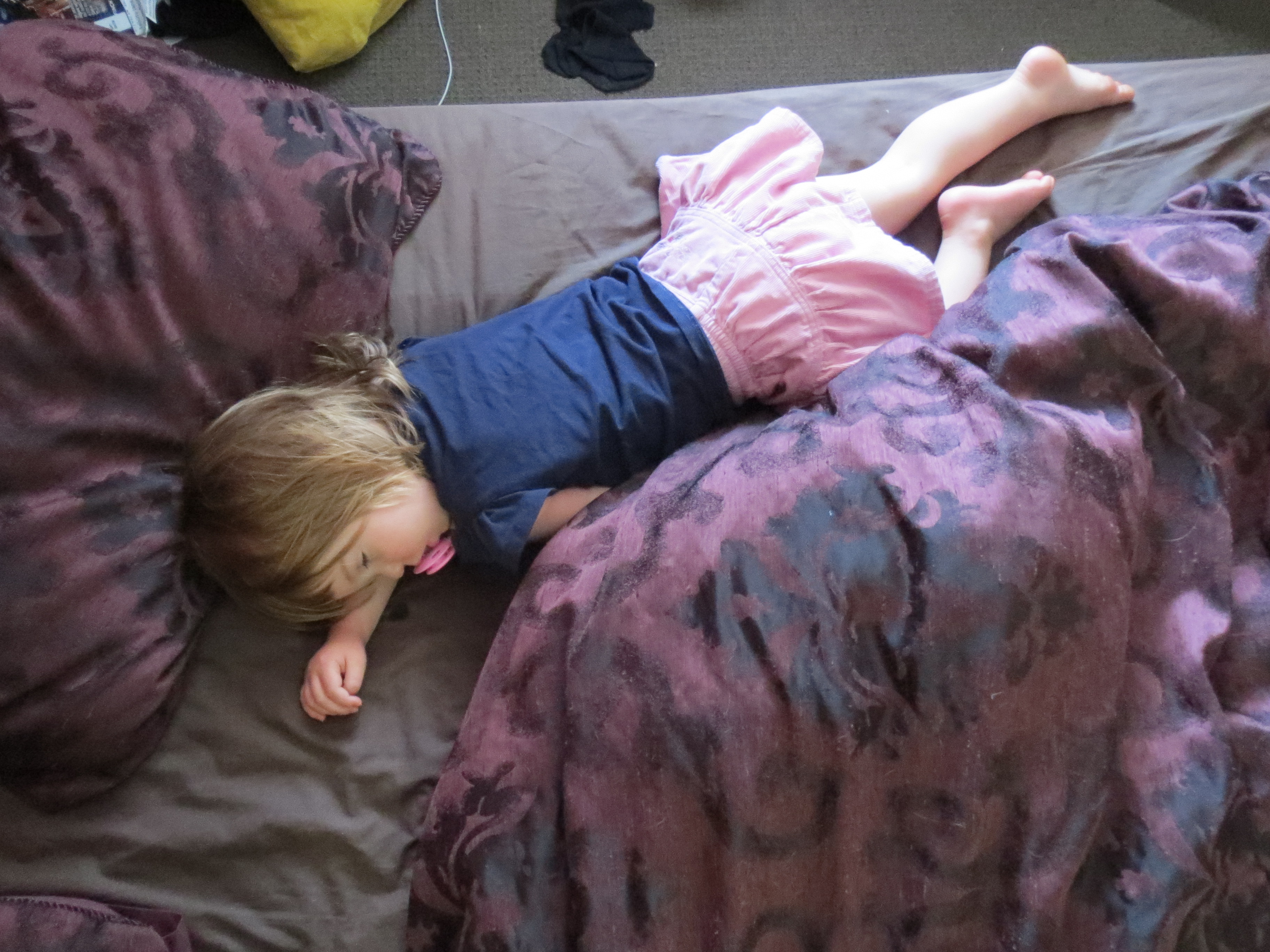 It was a raging success, I think. Today’s weather, like at her party last year, was always going to be hot – over thirty degrees – but fortunately my parents bought us a gazebo for Christmas (we had NO idea, and it’s just brilliant and beautiful), and my father-in-law brought over a huge length of shadecloth and clipped it to the roof and fence – turning half the yard into a kind of tent. That meant we were able to stay outside, which meant that all the post-party mess is out there – all the crumbs, all the water (there was water play too!), all the icing smears, all the paint, all the watermelon juice! The difference in post-party stress levels is amazing. Half of it gets hosed away or put straight in the wheelie bin. This was SO much easier than last year, when everything had to be carried to and from a park, because we had nowhere else to go.