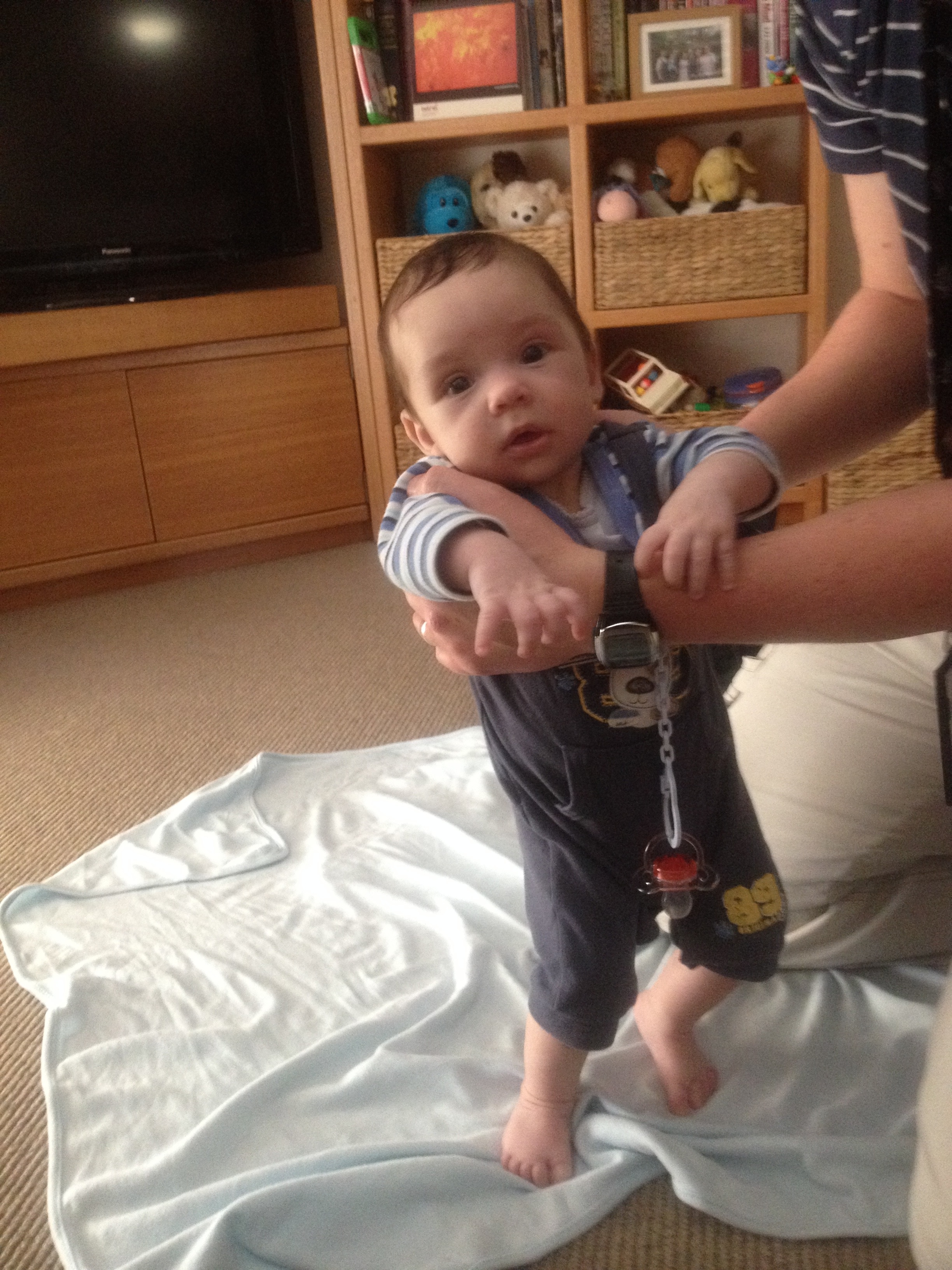 TJ’s been enjoying novelty lately, including the slightly-offputting novelty of standing on his own two feet – sorta. At best, he lasts a few seconds before losing the knack.