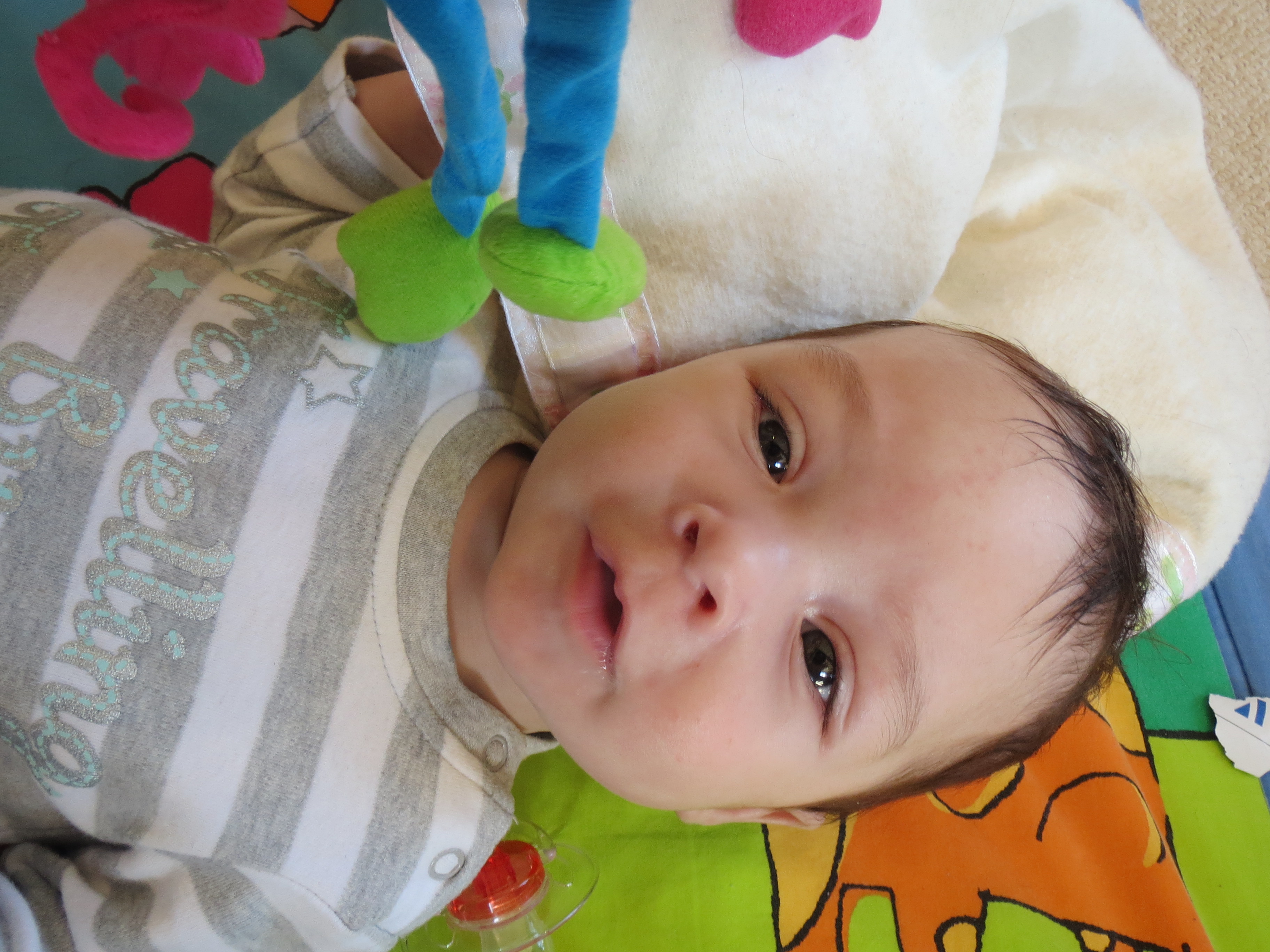 For the first time, TJ was trying to get his knees under him today. I’m looking forward to his crawling ability, because Louisette found crawling SO EXCITING. I’m also dreading that time, because that was about when Louisette’s curiosity and self-destructive urges were at their most focused. If there was a powerpoint, she had to go to it – over and over again, even if I took her to another room with a bunch of toys.