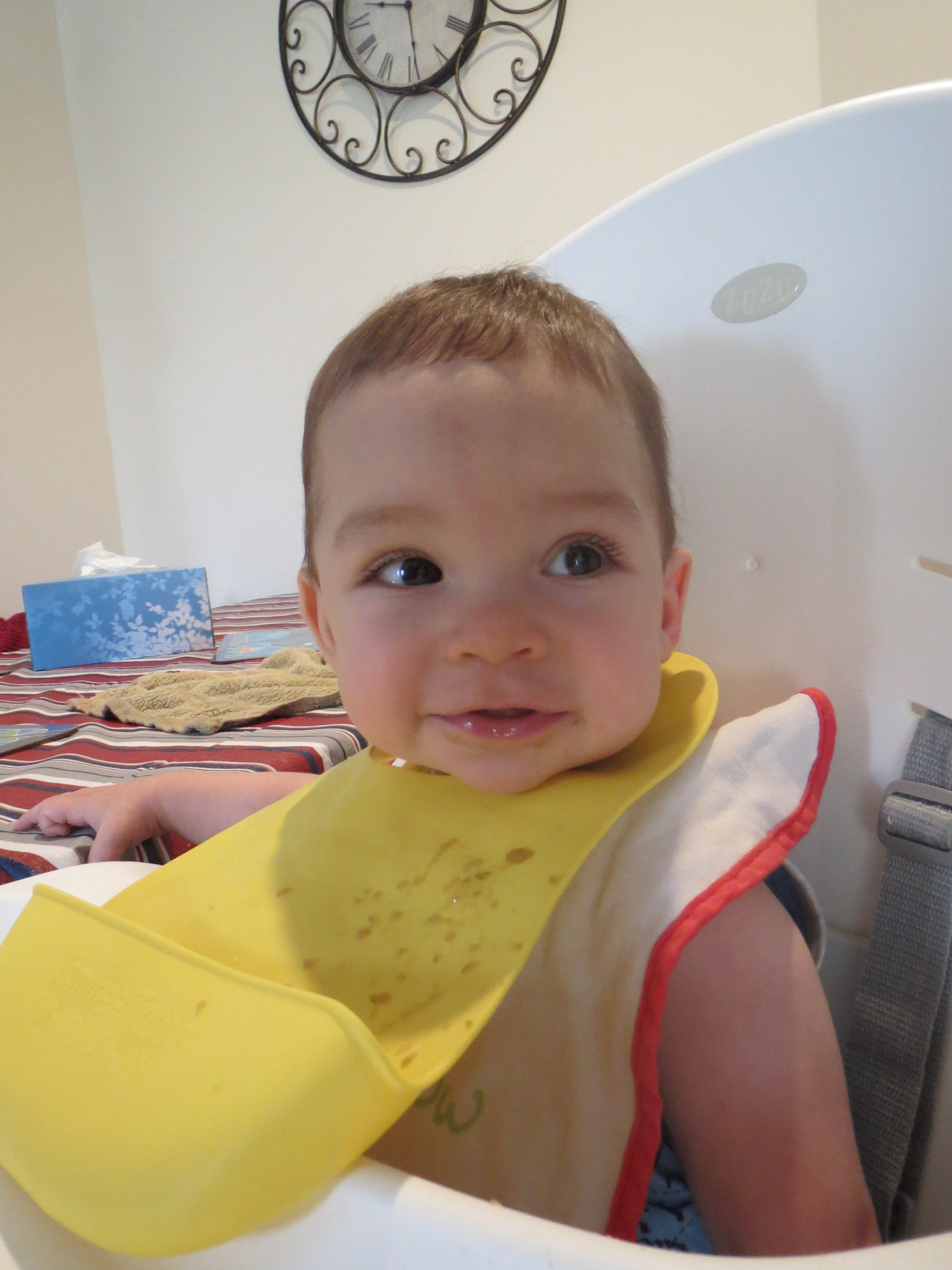 The last pic shows his two teeth, which are still coming through on his lower gum.
