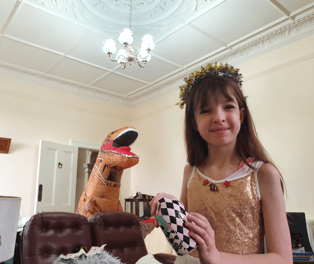 This is a Christmas photo featuring my daughter—and, in the background, my nephew.