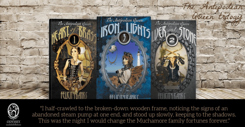 This is a pretty arrangement of my magical steampunk trilogy (done by the publisher, Odyssey Books):