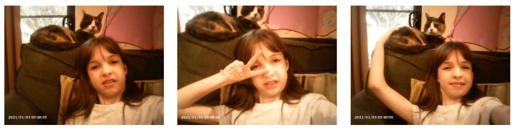 She also likes taking pictures, especially of our cats. Ever since she was very small (3 or so) she’s enjoyed taking pictures, so it’s clearly not just a phase. For Christmas, I bought her a kids’ underwater camera (a pink one, obviously). It was $40 (not including a micro SD card, which it doesn’t work without!) so obviously not the greatest camera in the world.