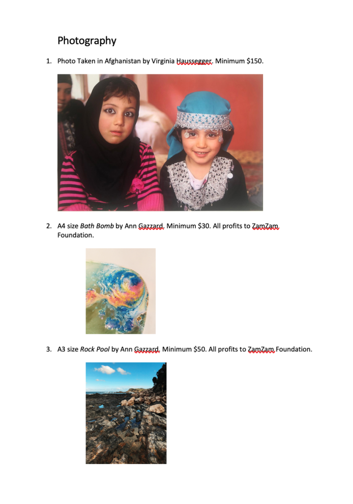 If you aren’t coming to the launch but you desperately want to bid on one of these items, I will try to accommodate you. Email ZamZamSecretary@gmail.com.