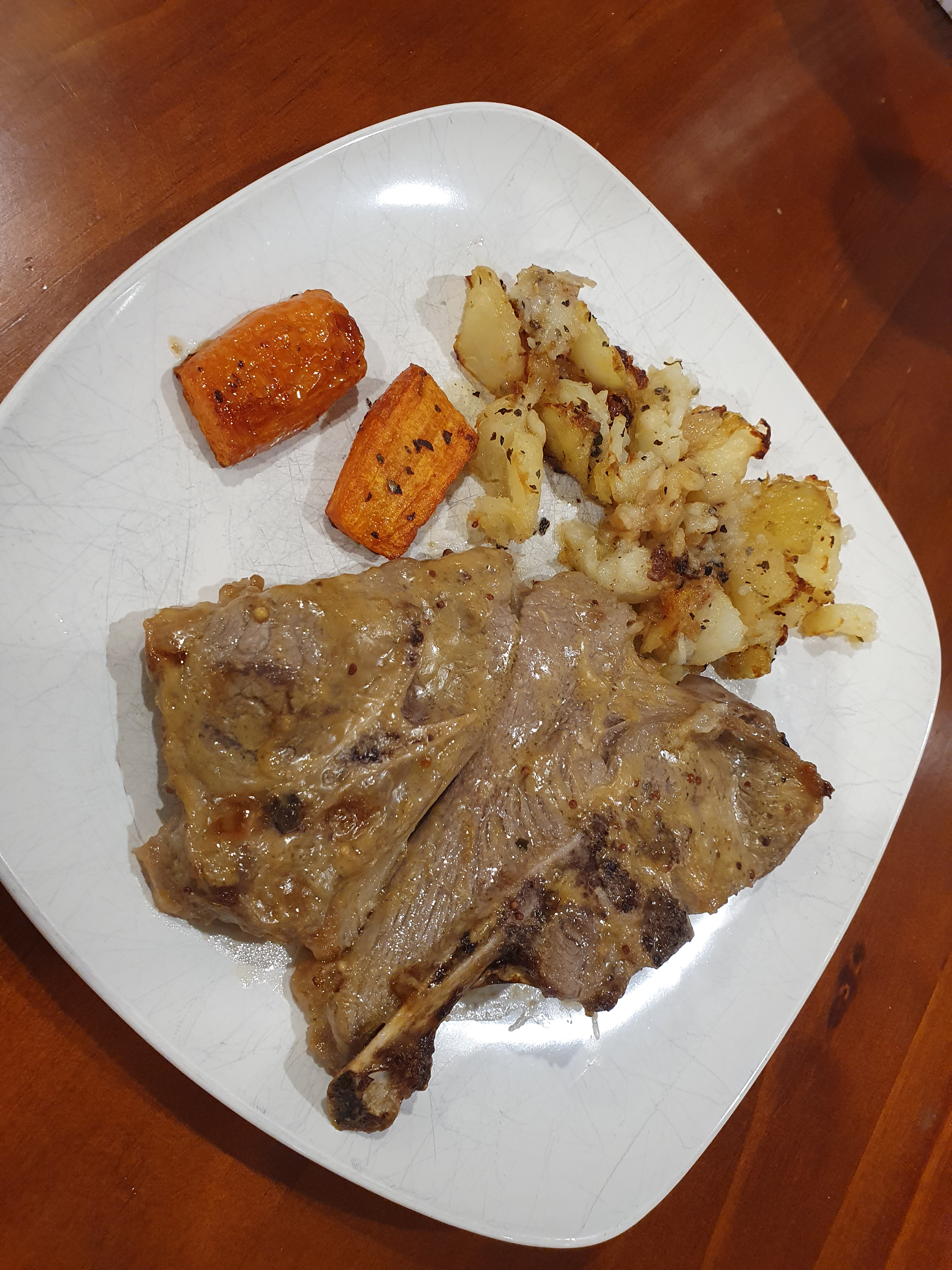 Today the lamb was marinated in a maple-mustard-apple cider thingy. VERY nice.