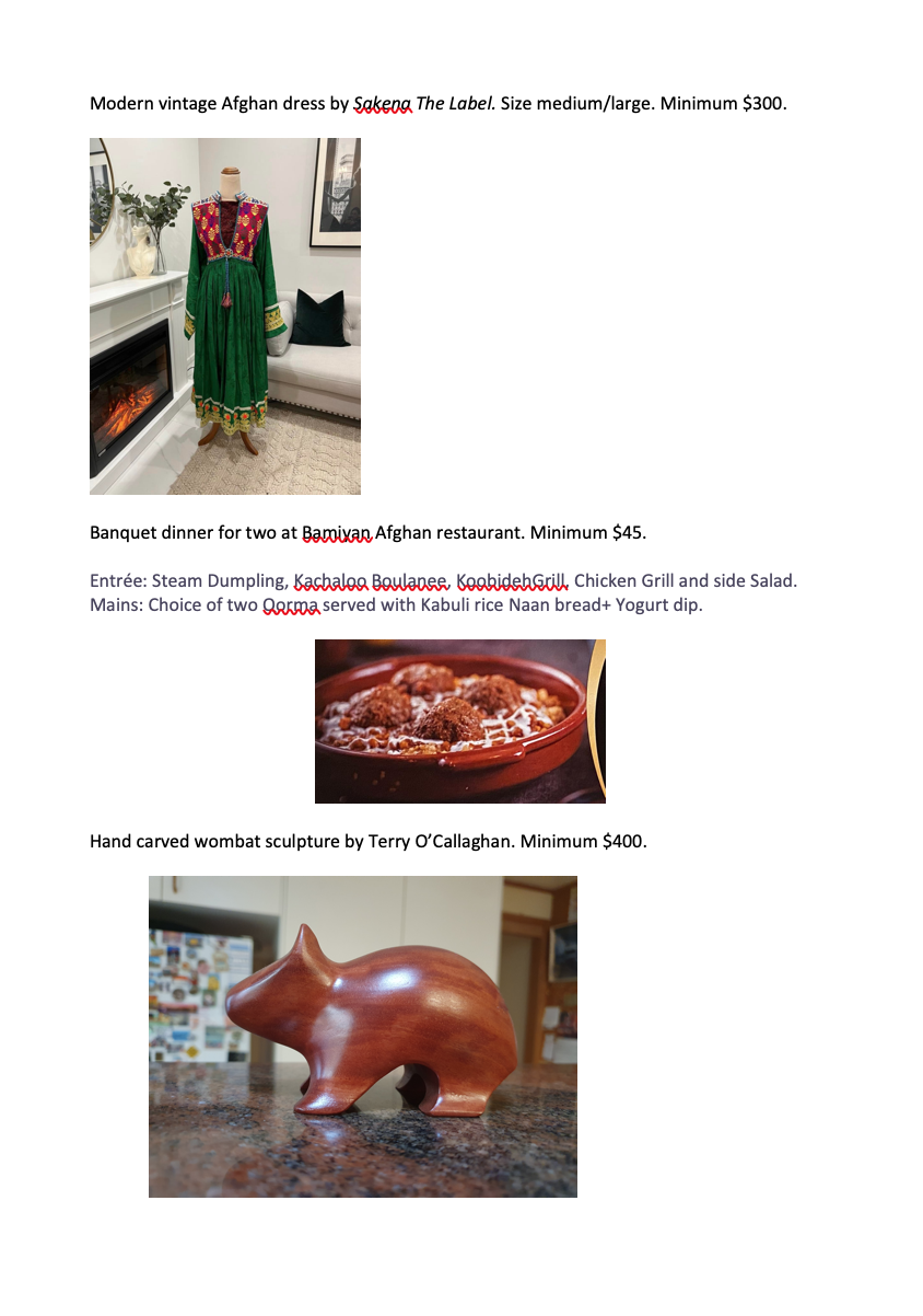 I organised the silent auction including loads of amazing art, handicrafts, books, antiques, collectables, and miscellaneous items. There are plenty of Afghan treasures in the mix.