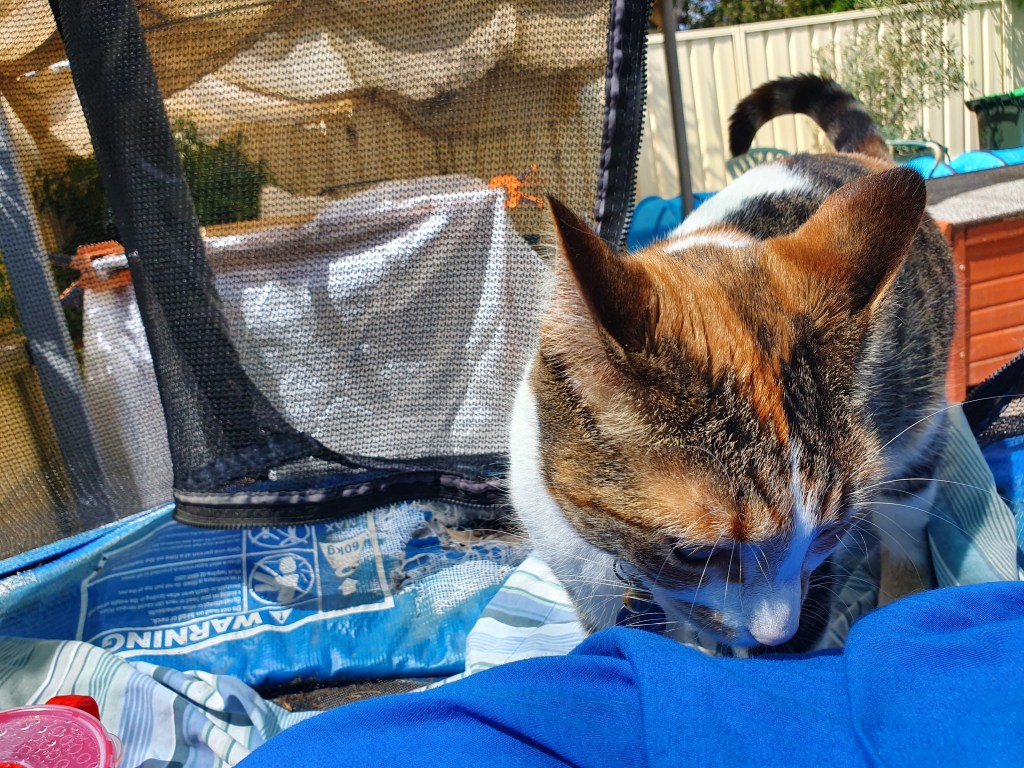 Chris has ADHD and works best with supervision/company so while he worked I made a ‘nest’ for myself, the kids, and the cats in the trampoline. Tim joined me for quite a while, and I ultimately fell asleep for about two hours. Both cats investigated the new use of the trampoline too.