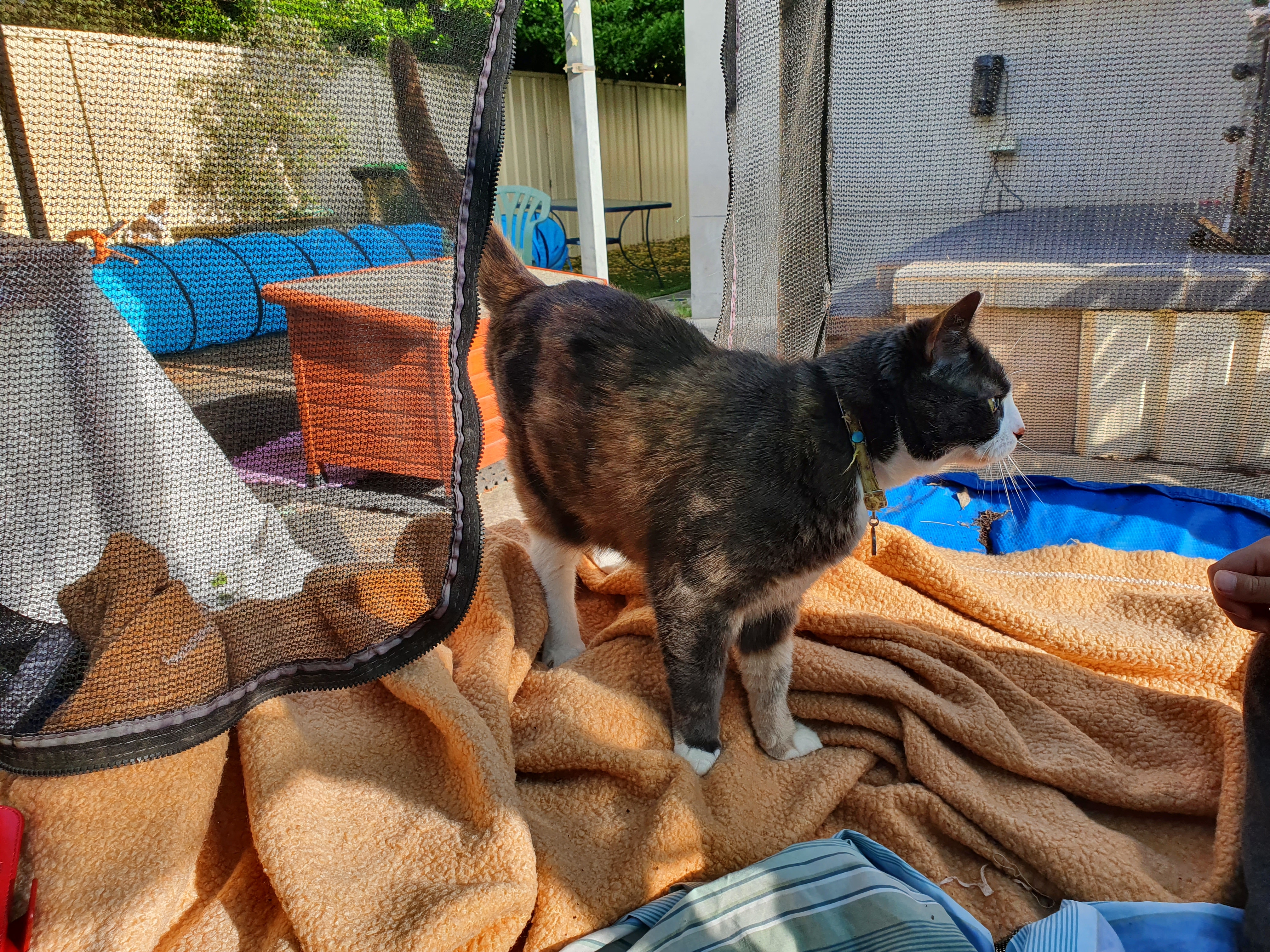 We have a gazebo and a quantity of good quality secondhand netting, so obviously we want to enclose the gazebo, making it part of the cat enclosure.