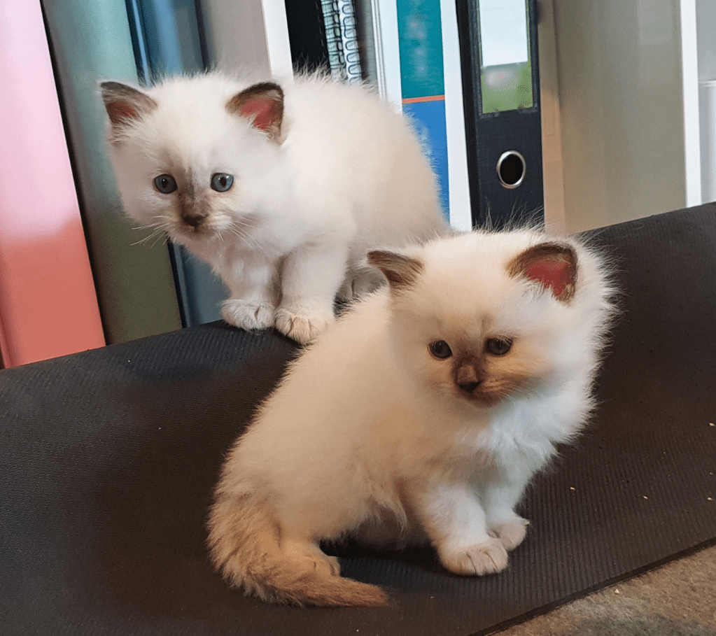 Here are some Ragdoll kittens at four weeks old:
