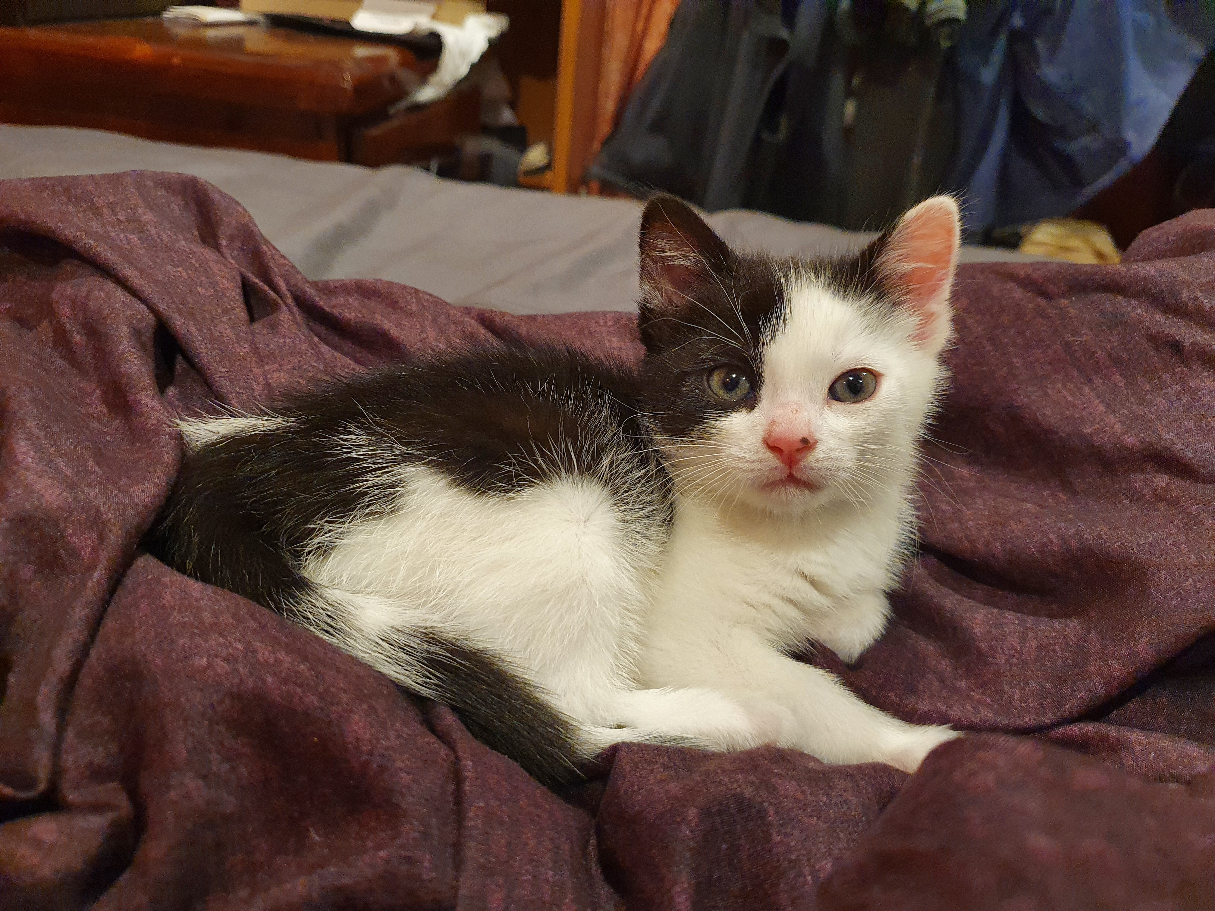 He is incredibly sweet, and will often burst into purring just to be near one of his pet humans. Or if one of us looks at him. Or when he invites himself into our lap. When I go to the bathroom at night, he pokes up his stoned little face to see if there’s any chance of a cuddle.