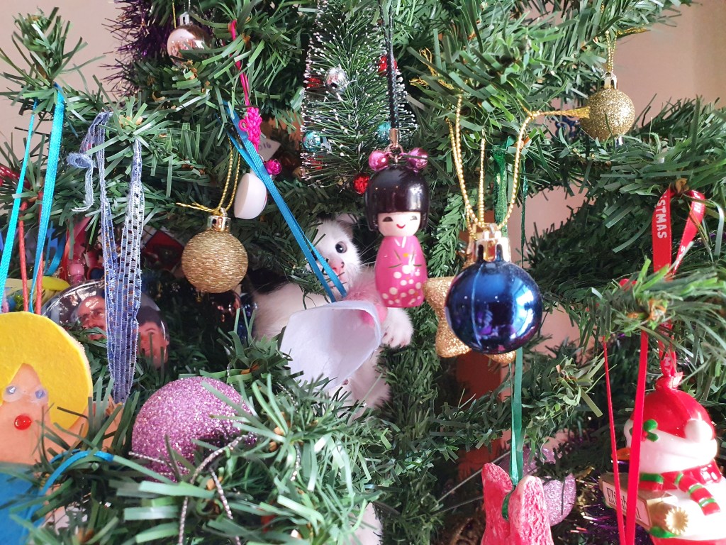 And, unlike our other cats (who were born suspicious), he adored playing in our Christmas tree.