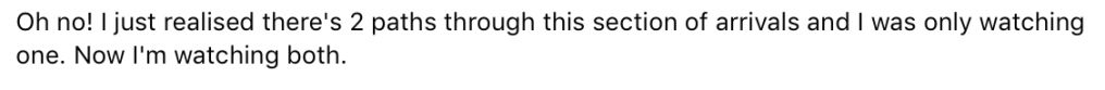 CRISP group tip number eight or so: Have a plan for security if you’re going through security with your refugees. Explain the process if possible. Also warn them that if they have metal (eg valuable jewellery) under their clothes they will get very thoroughly frisked (and honestly may end up strip-searched). Use a handbag instead, as you can keep a handbag with you.