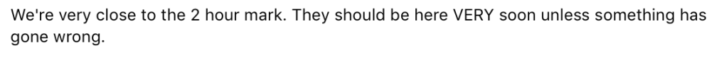 It was just a teensy misunderstanding, probably because of the flights changing. Except it wasn’t teensy after all.