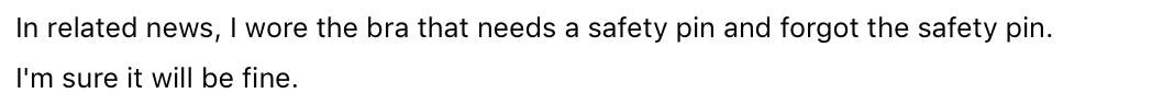Also, there are several bandaids on my wrist and hand. Enough to make people think, “Why is that grown adult wearing so many bandages? Was it just a funny accident or something more sinister? Are they slightly uncoordinated or is something very seriously wrong with them? Could they be dangerous to others?