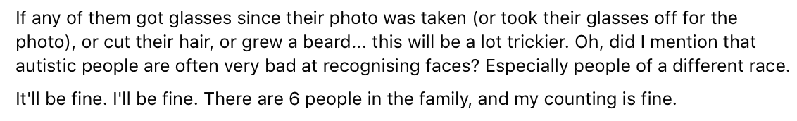 And yeah, I’m smart. And good with plans and organisation. And VERY good at quickly making new plans. And sometimes, I’m kind of brilliant with cross-cultural understanding (other times, I fail to see what everyone else in the fully English and monocultural conversation is talking about… that’s part of the magic of being autistic). But I’m quite bad at negotiating systems that are made by other people. Like, for example, airports. And Sydney.