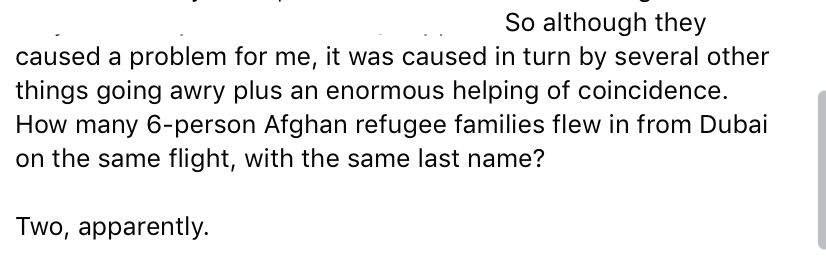 So yeah, I happened to end up on a flight of fifty people and one of them was a friend of mine. Who was sitting in the same two rows where the Afghan family and I were sitting. I could not have organised it better if I tried.