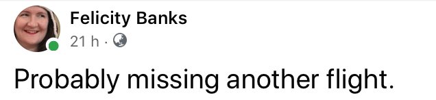 10 minutes until we miss another flight. But that doesn’t matter any more, does it?